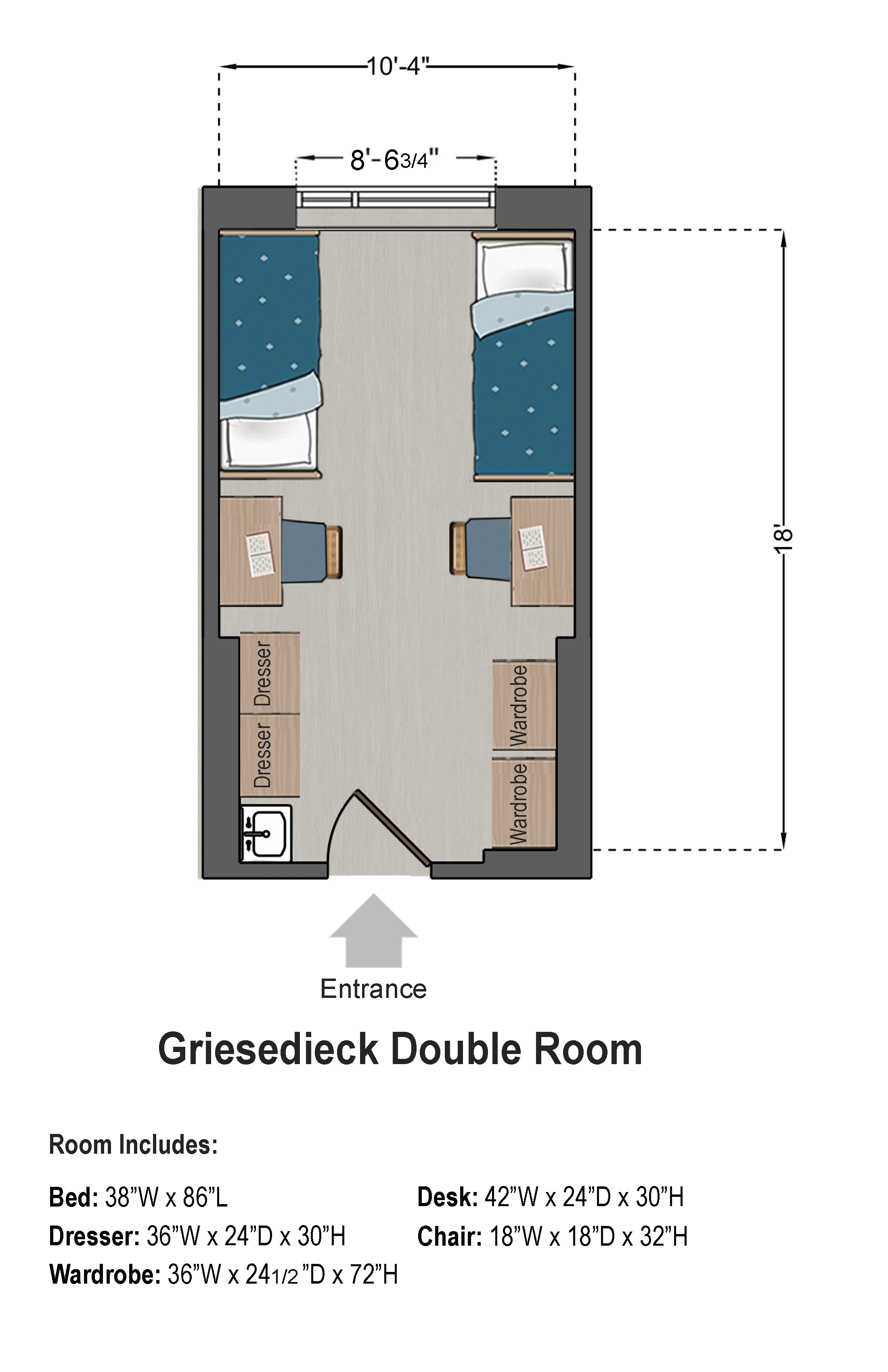 Population: About 650 freshman and older students on 14 floors in Griesedieck, Walsh  and Clemens Halls, all of which are co-ed with single-gender rooms and single-gender floors.